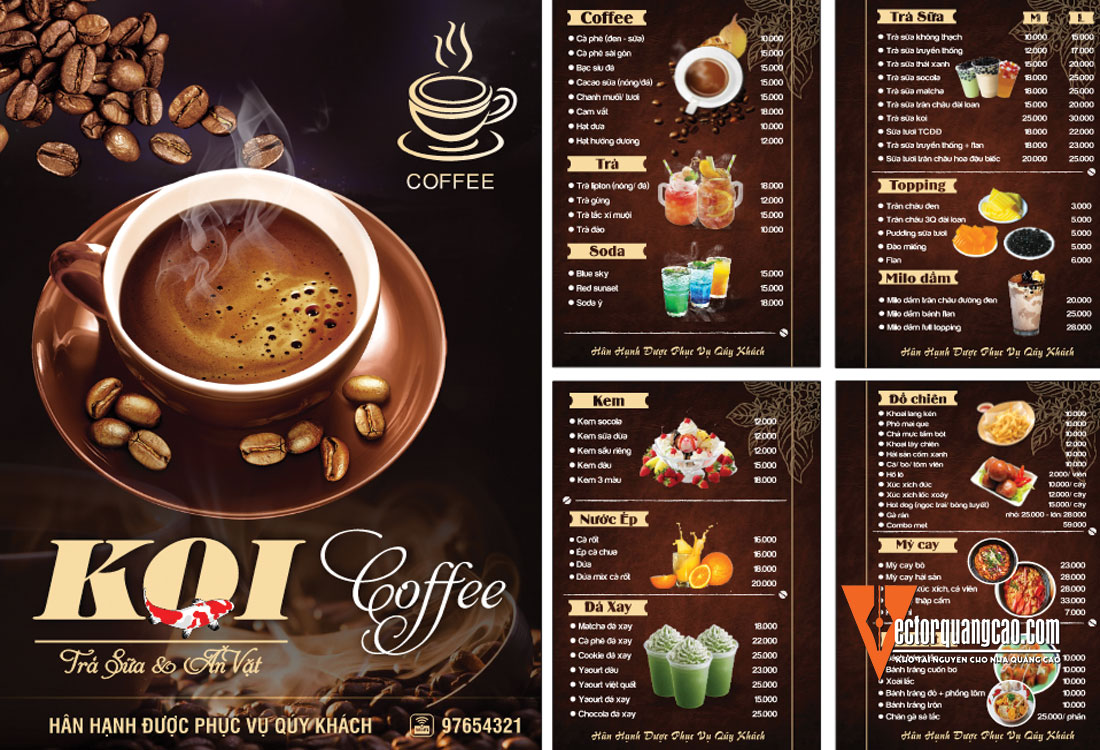 File Corel Thiết Kế Cho Menu Quán Cafe Trà Sữa Ăn Vặt hỗ trợ cho việc in ấn và thi công quảng cáo. File vector dễ dàng chỉnh sửa và tải trực tiếp.