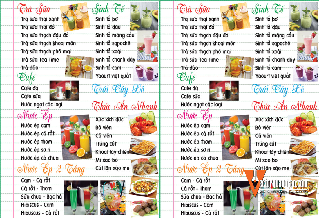 File Corel Thiết Kế Cho Menu Quán Cafe Trà Sữa Ăn Vặt hỗ trợ cho việc in ấn và thi công quảng cáo. File vector dễ dàng chỉnh sửa và tải trực tiếp.