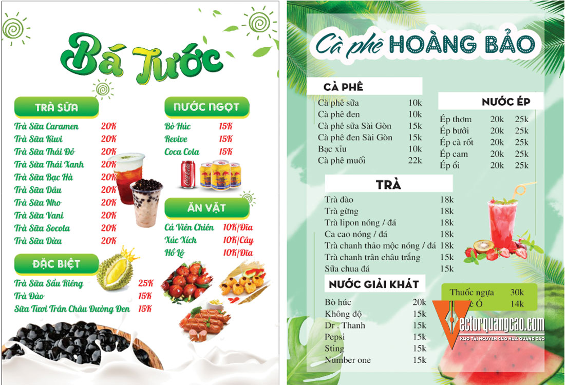 File Corel Thiết Kế Cho Menu Quán Cafe Trà Sữa Ăn Vặt hỗ trợ cho việc in ấn và thi công quảng cáo. File vector dễ dàng chỉnh sửa và tải trực tiếp.
