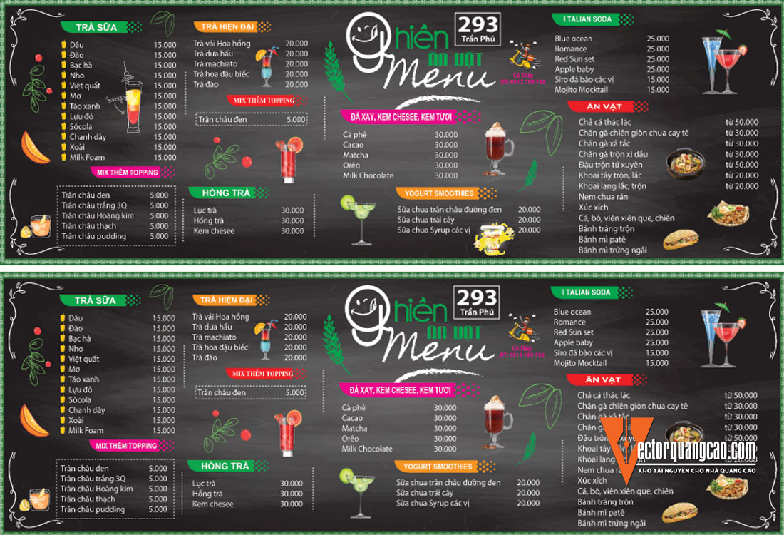 File Corel Thiết Kế Cho Menu Quán Cafe Trà Sữa Ăn Vặt 250
