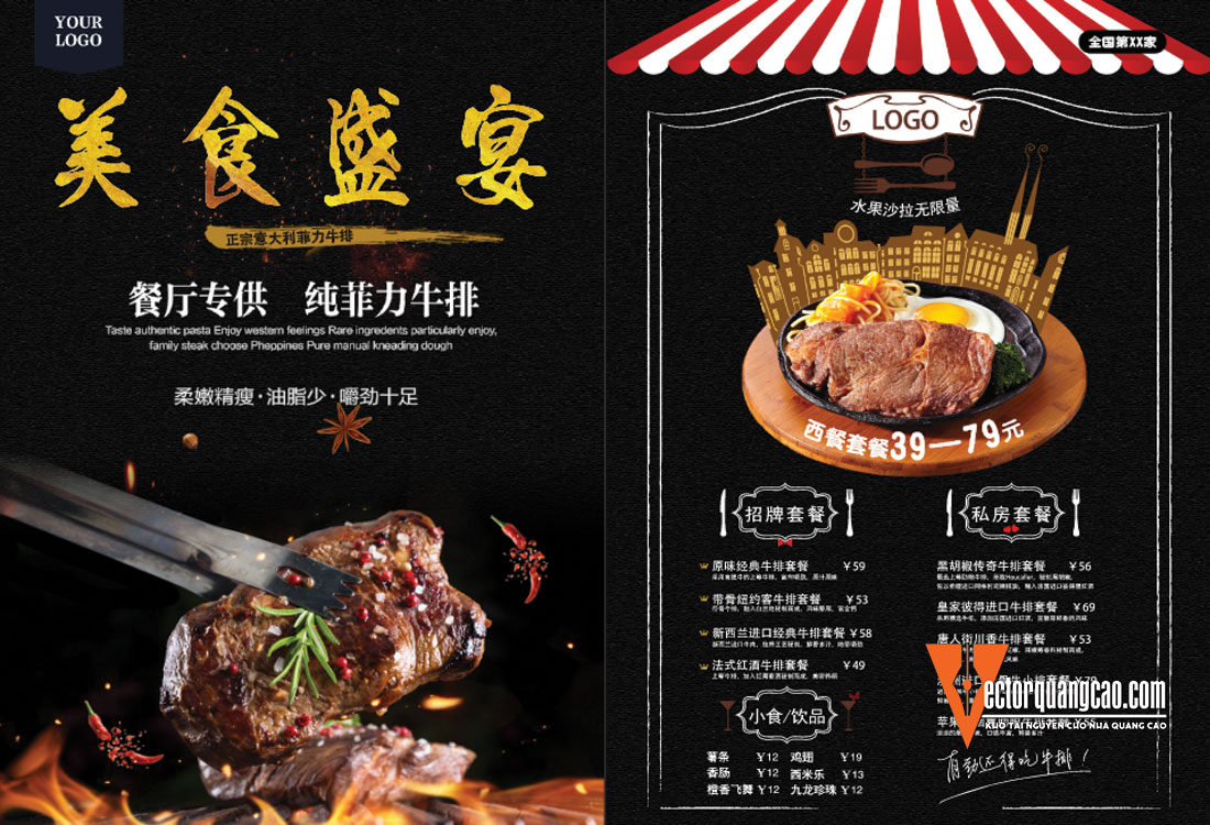 File Corel thiết kế Menu cho Nhà Hàng Quán Ăn Đồ Uống hỗ trợ cho việc in ấn và thi công quảng cáo. File vector dễ dàng chỉnh sửa và tải trực tiếp.