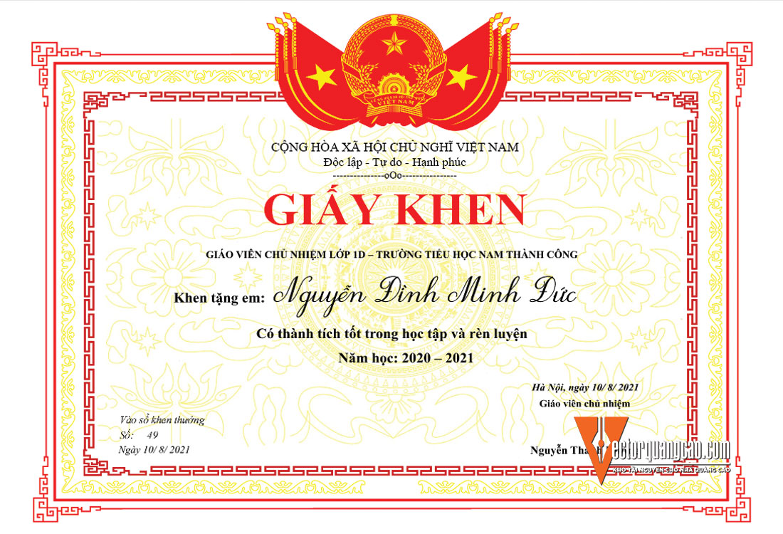 Giấy Khen Giáo Dục
